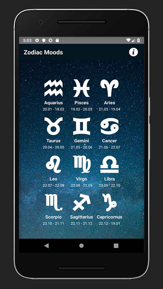 Zodiac Moods React Native App.
